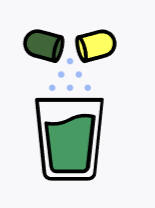 Een capsule kan worden geopend en de inhoud kan worden gemengd met water en gedronken.